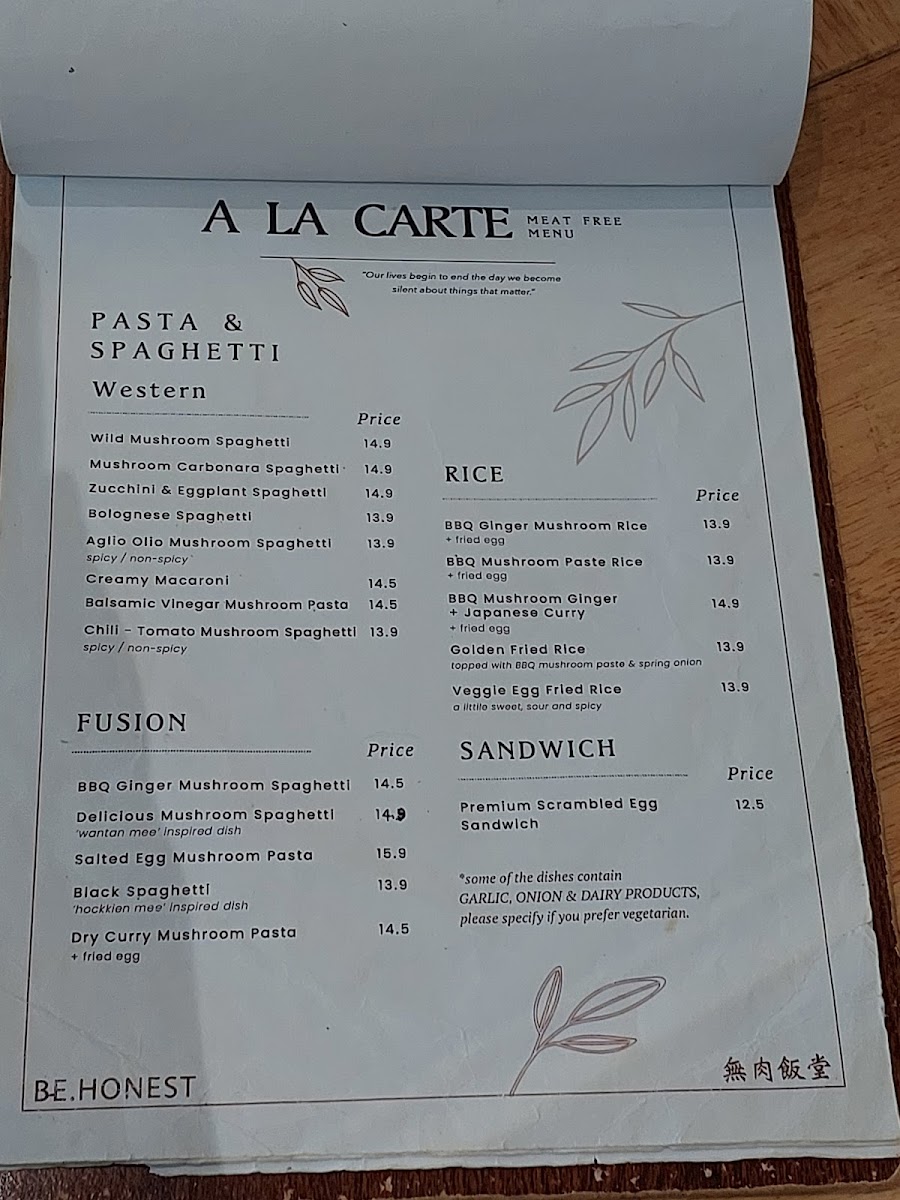 On the culinary front, Honest Bakery & Cafe specializes in vegetarian cuisine, providing a delightful range of dishes that prove satisfying for even the most discerning palates. Customers rave about their vegetarian aglio olio spaghetti and the vegetarian dry curry spaghetti, both of which come with complimentary drinks like refreshing iced lemon tea or green tea. These dishes are a melody of flavors, from the aromatic garlic in the aglio olio to the rich, comforting spices in the curry—each bite is a delightful experience that leaves you wanting more.